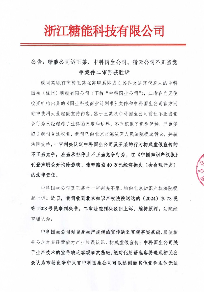 Ankündigung: Sugar Energy hat den zweiten Prozess im Fall unlauteren Wettbewerbs gegen Wang, Zhongke Guosheng Company und Lieyun Company gewonnen